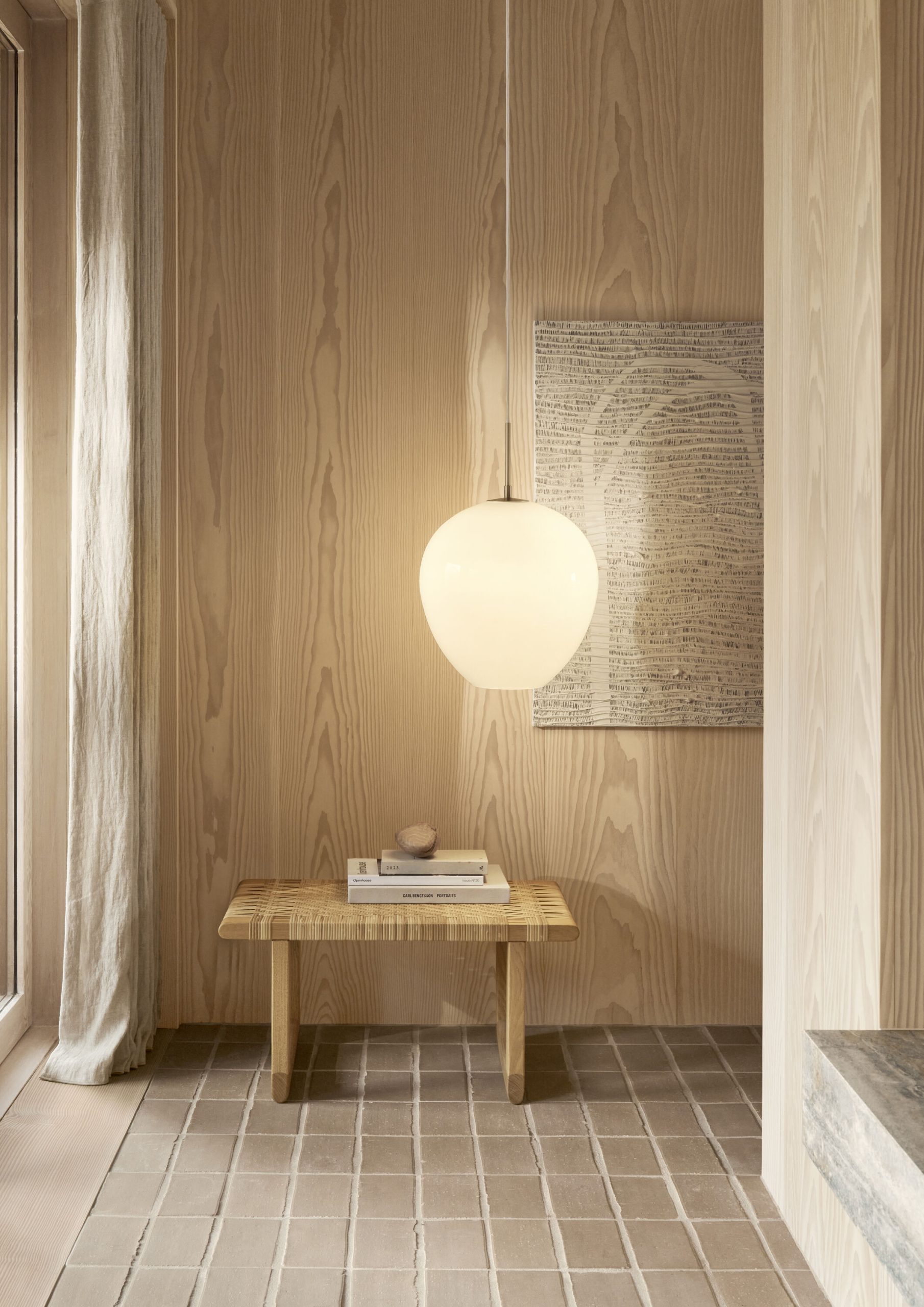 MT221 Tulip Pendel blev designet af Marianne Tuxen i 2022 i forbindelse med restaureringen af Pompejisalen på Carlsberg Akademi i København. Lampen kombinerer klassisk elegance med moderne æstetik og demonstrerer et højt niveau af håndværk. Skærmen, hvis form refererer til en tulipans kronblade, er lavet af tre lag mundblæst, blankt, hvidt opalglas og oplyser omgivelserne med et behageligt, blændfrit lys. Ophænget i massiv messing smelter sammen med skærmen og danner en perfekt organisk helhed. MT221 Tulip Pendel fås i størrelserne Ø170 og Ø360.