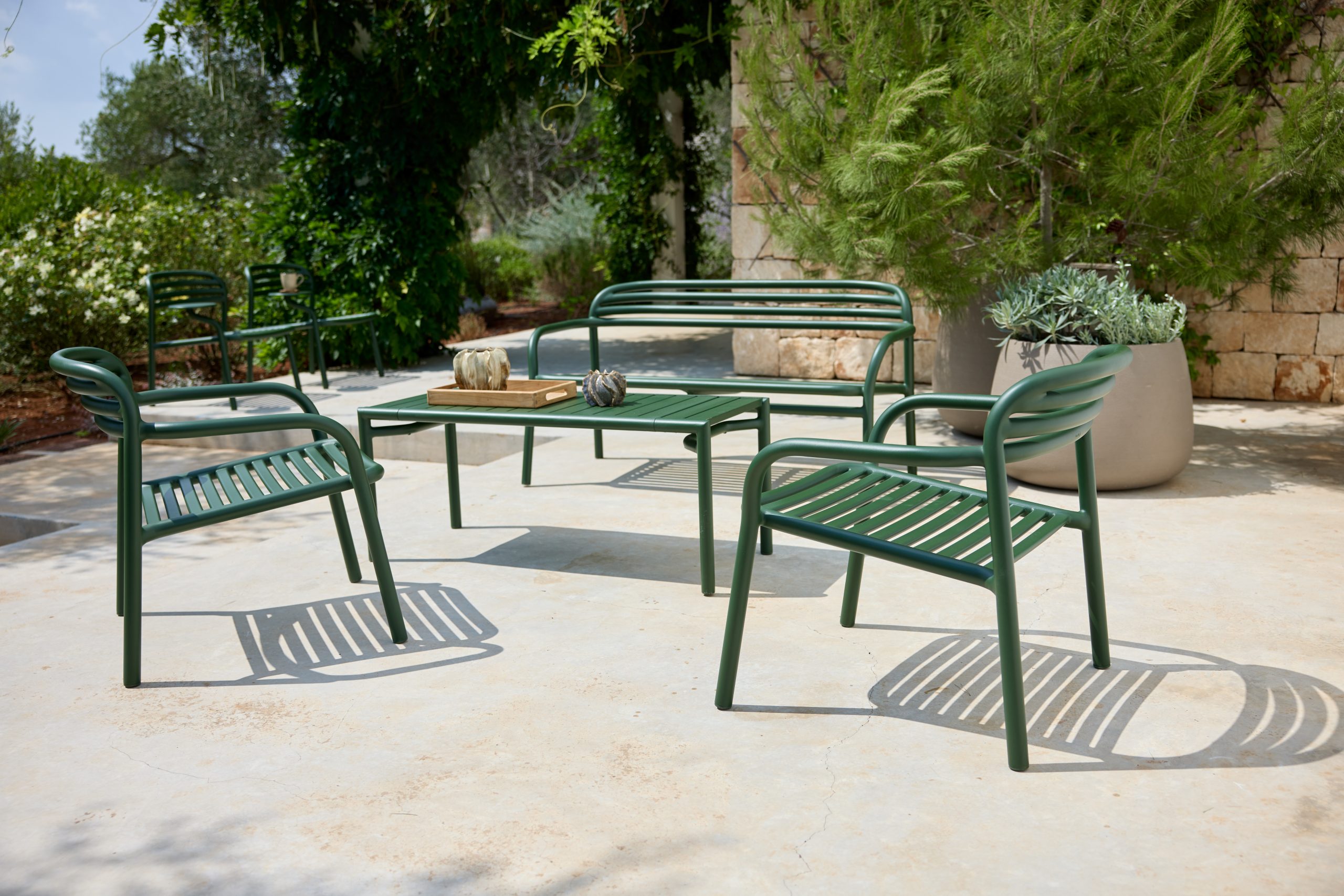 Bliss sofabord/bænk af Foersom & Hiort-Lorenzen MDD er et alsidigt design til moderne loungemiljøer. Det enkle design er udført i pulverlakeret aluminium – et let, vejrbestandigt og vedligeholdelsesfrit materiale, der egner sig til både private og professionelle uderum.