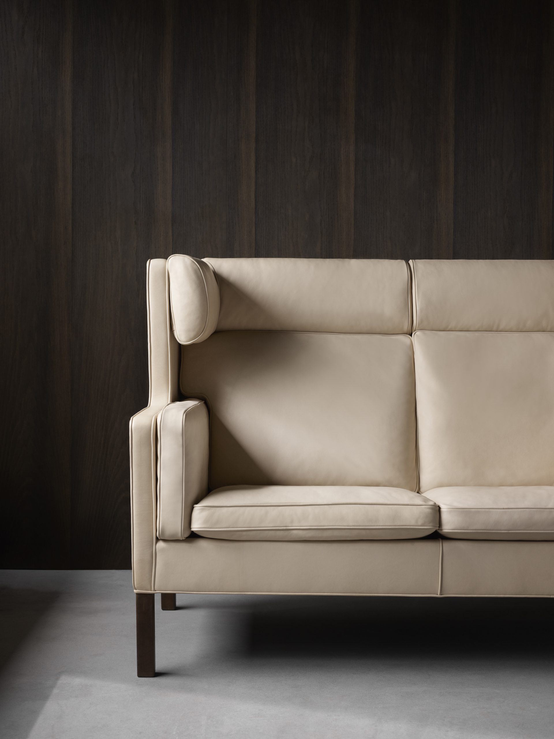 Børge Mogensen tegnede i 1960’erne en ikonisk serie af fuldpolstrede sofaer og loungestole. Møblerne er defineret af skarpe ydre konturer og bløde hynder på indersiden – et udtryk, der kun kan opnås takket være et sublimt niveau af materialekvalitet og polstringspræcision.