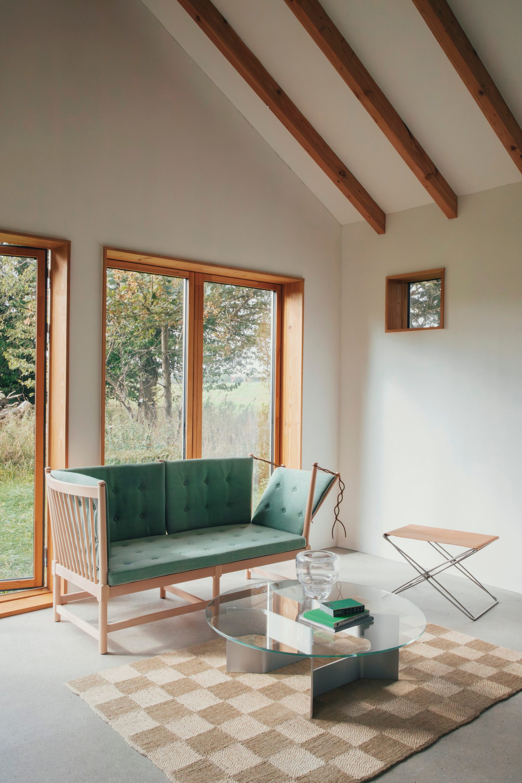 Tremmesofaen 80-års jubilæumsudgave fås i udvalgte varianter af Steelcuttekstiler fra Kvadrat og med stel i bøg i enten sæbebehandlet eller lakeret i farven Chestnut brown. Materialevalget er en nutidig fortolkning af det oprindelige udtryk fra 1940’erne, hvor sofaen i massiv bøg ofte blev betrukket med karakteristiske ternede tekstiler designet af Lis Ahlmann.