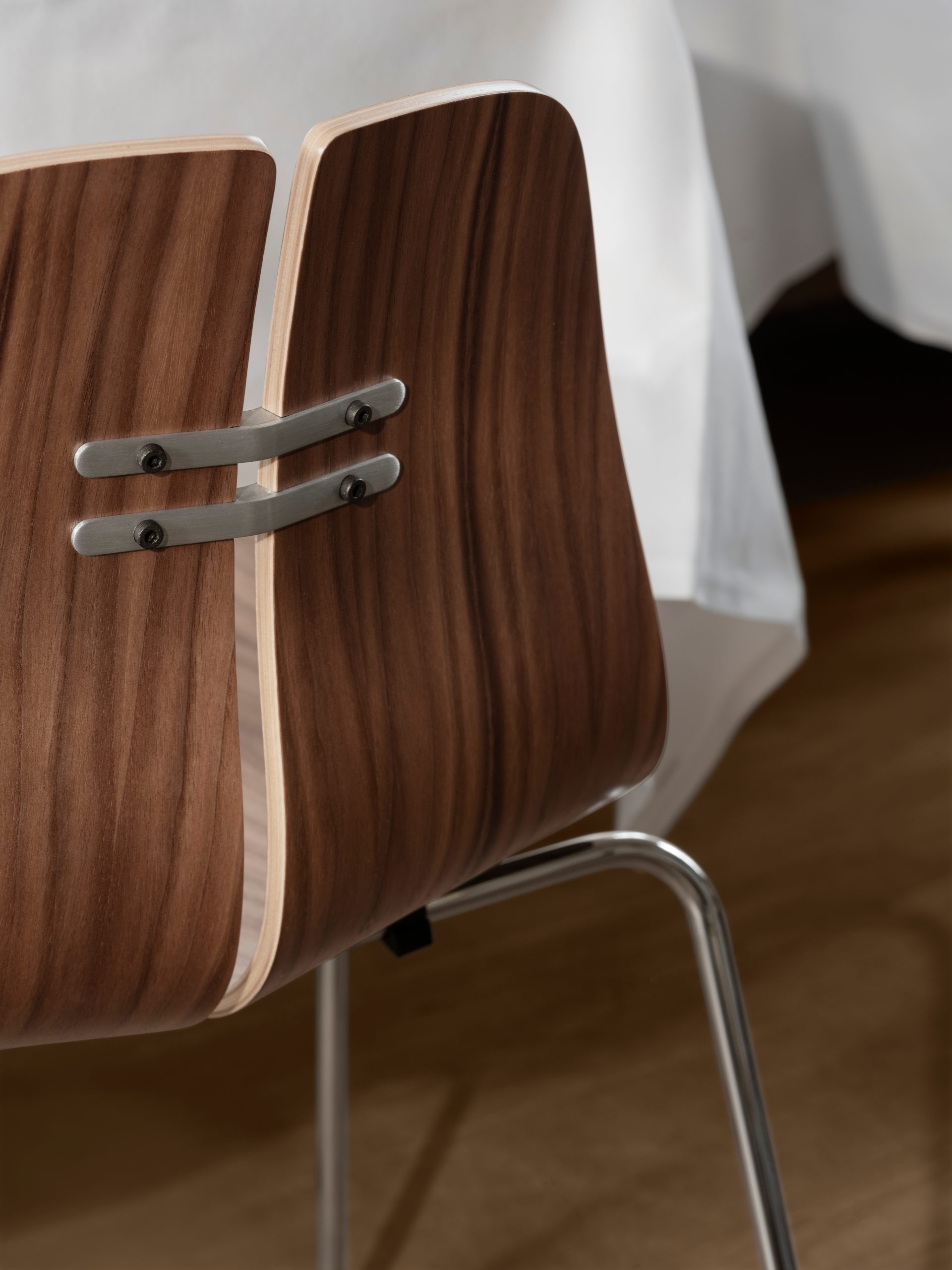 PK3™-stolen er et urealiseret design af Poul Kjærholm fra 1954 – nu sat i produktion for første gang. Med sit skulpturelle todelte sæde og slanke stålstel forener stolen visuel klarhed med funktionel anvendelighed. PK3™ udtrykker Kjærholms særlige evne til at forene industriel præcision med organisk enkelhed. PK3™-stolen består af to spejlvendte skaller i formpresset finer, samlet med diskrete beslag i aluminium og balanceret på en slank ramme i stålrør. Stolen fås i eg, valnød eller sortfarvet askefinér med stel i enten krom, rustfrit stål eller sort pulverlakeret stål. Den kompakte, stabelbare stol egner sig både til private og professionelle rum – og fås også med et diskret sammenkoblingsbeslag til opsætning i rækker.
